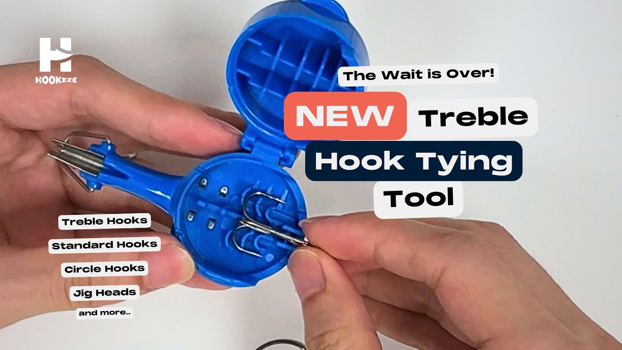 New Treble Hook Tying Tool by HookEze. Perfect for anglers of all skill levels, it helps you tie secure knots, change lures easily, and protect your fingers from sharp hooks. Fish smarter, not harder